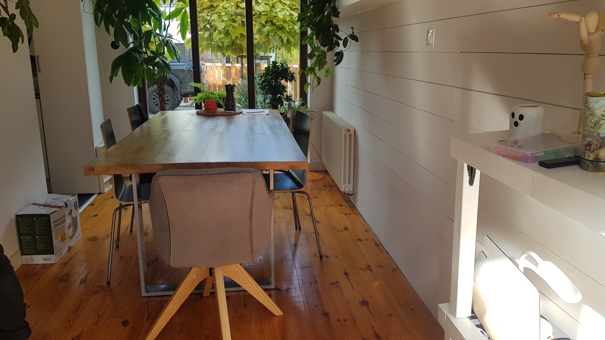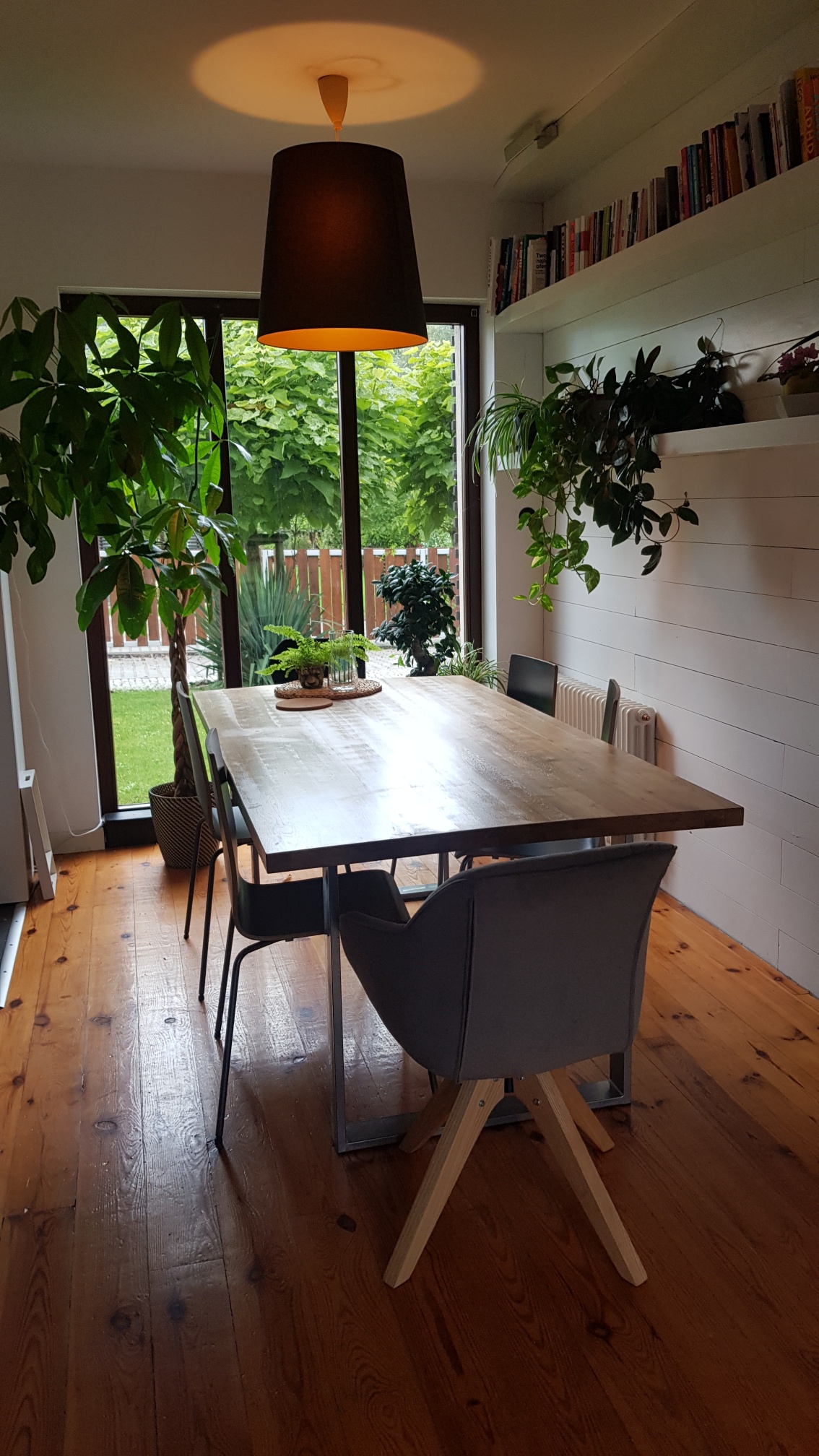 Na wszystkich podłogach parteru zastosowano drewniane deski , dzięki czemu wnętrze wygląda świeżo i naturalnie . Schody stalowe oryginalne w swojej formie.