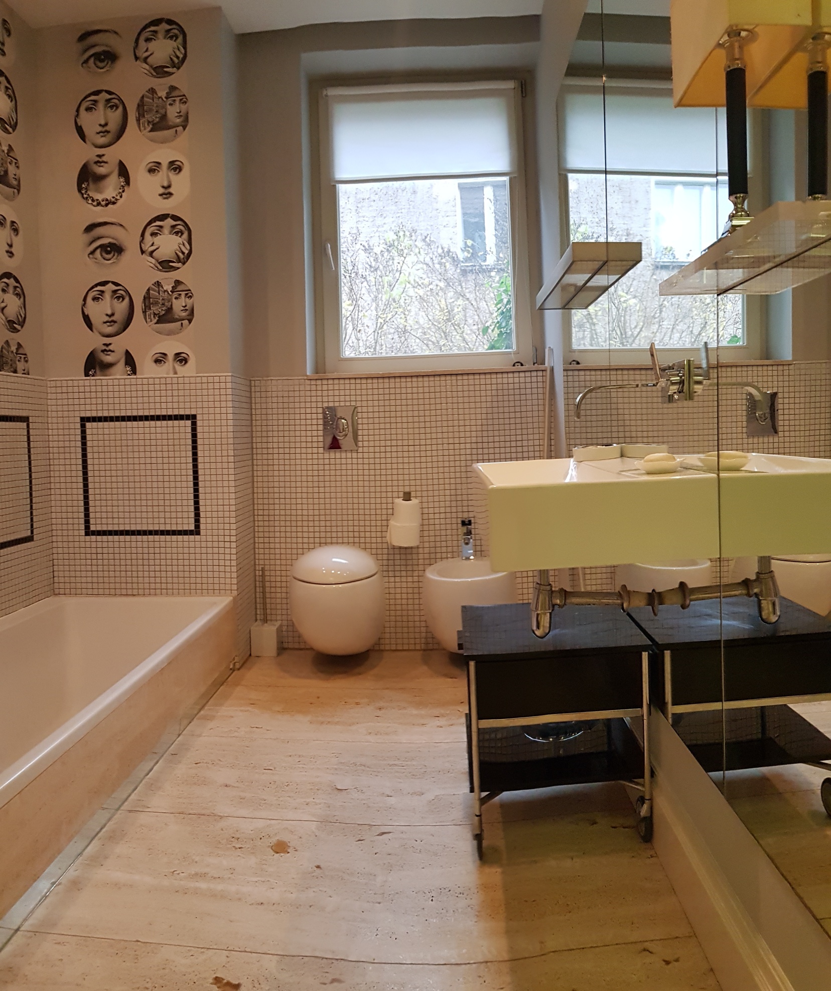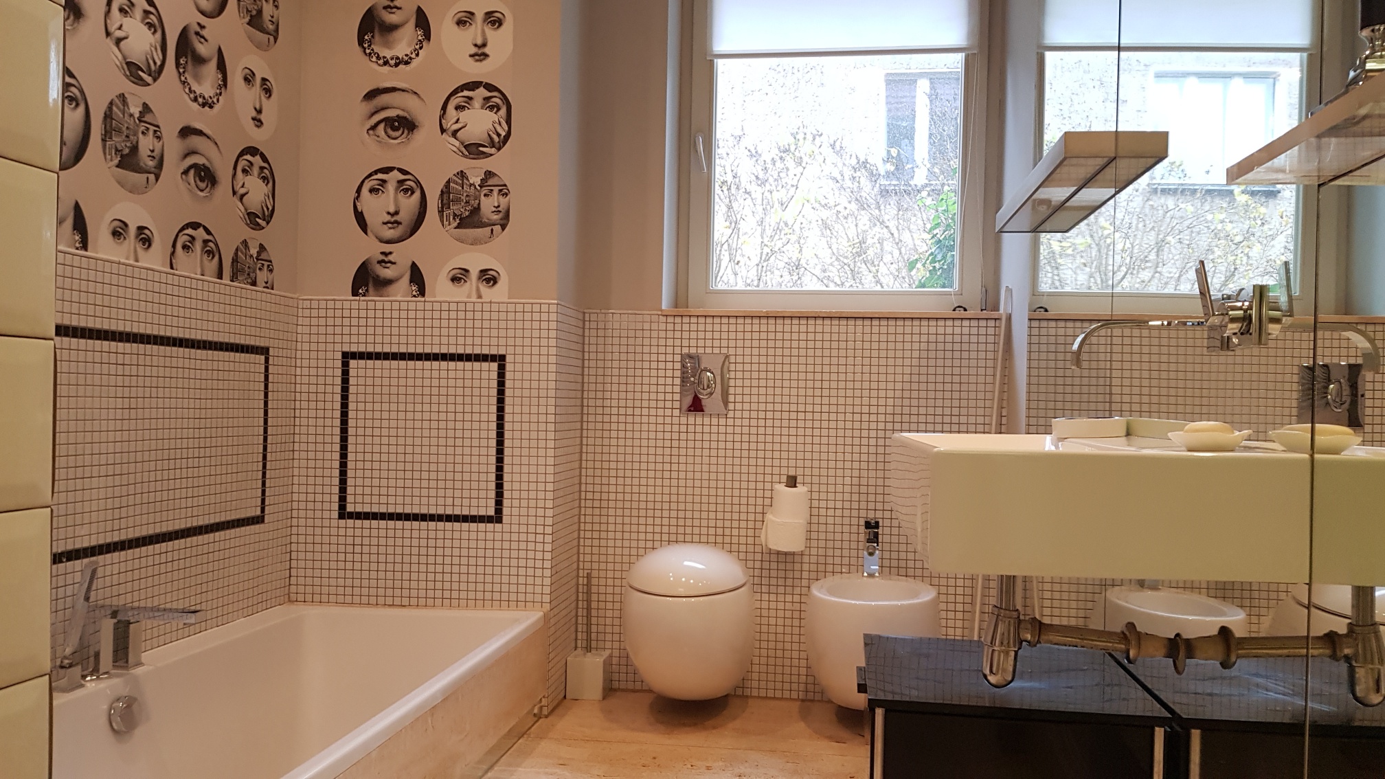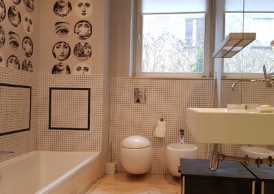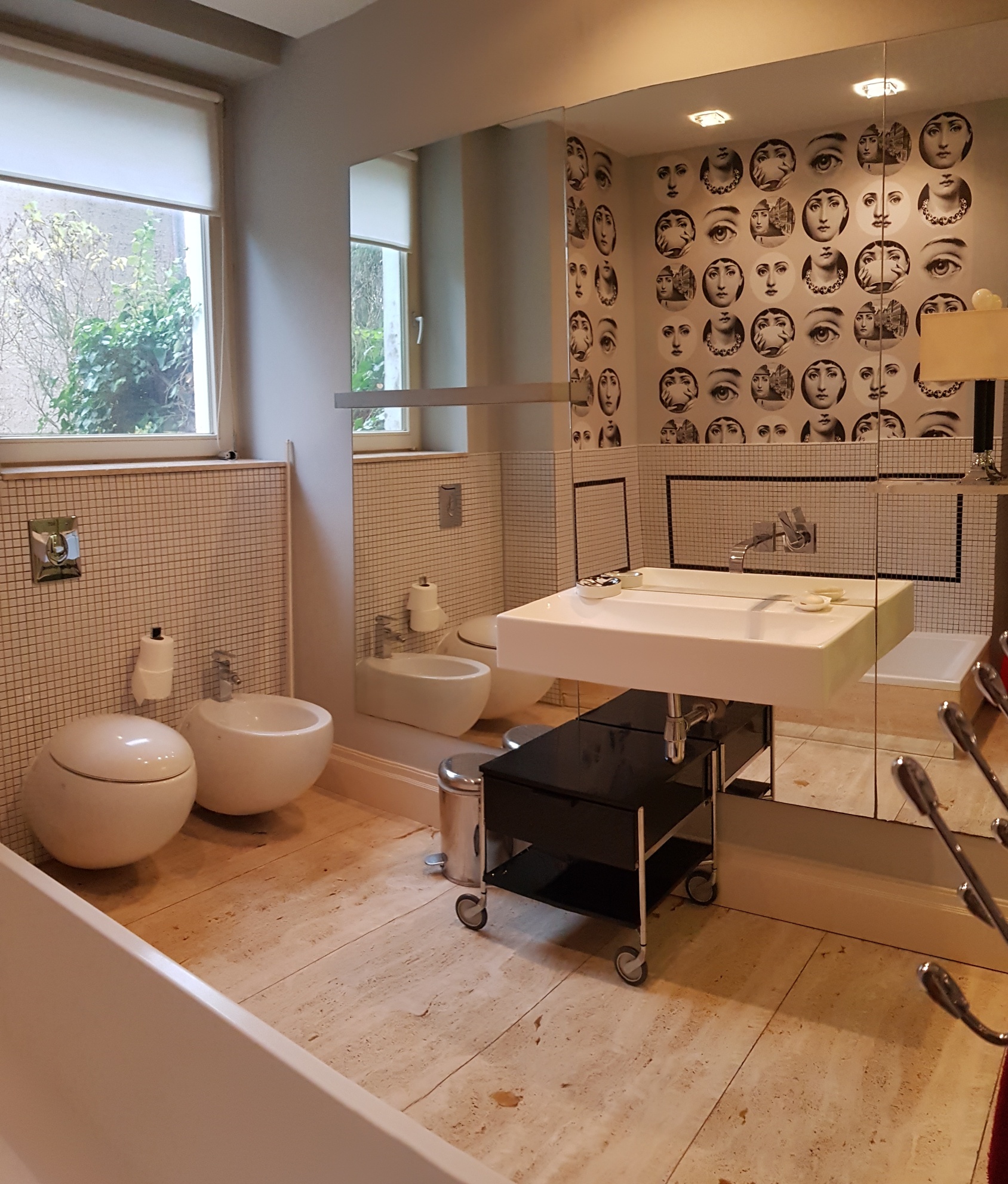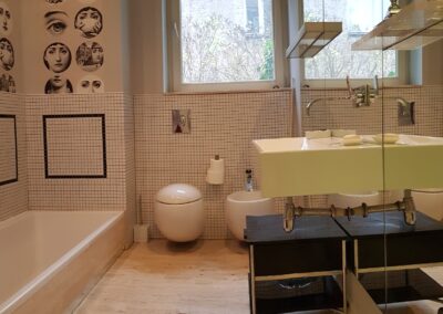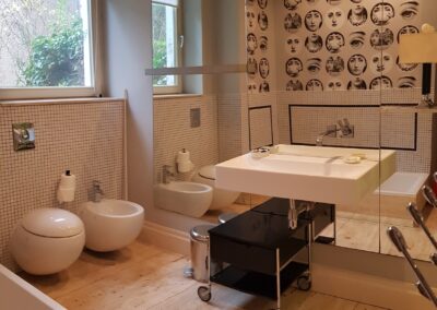 -łazienka z wc doświetlona oknem ,bidet, wanna i kabina z poziomu zero,ściana z lustrem