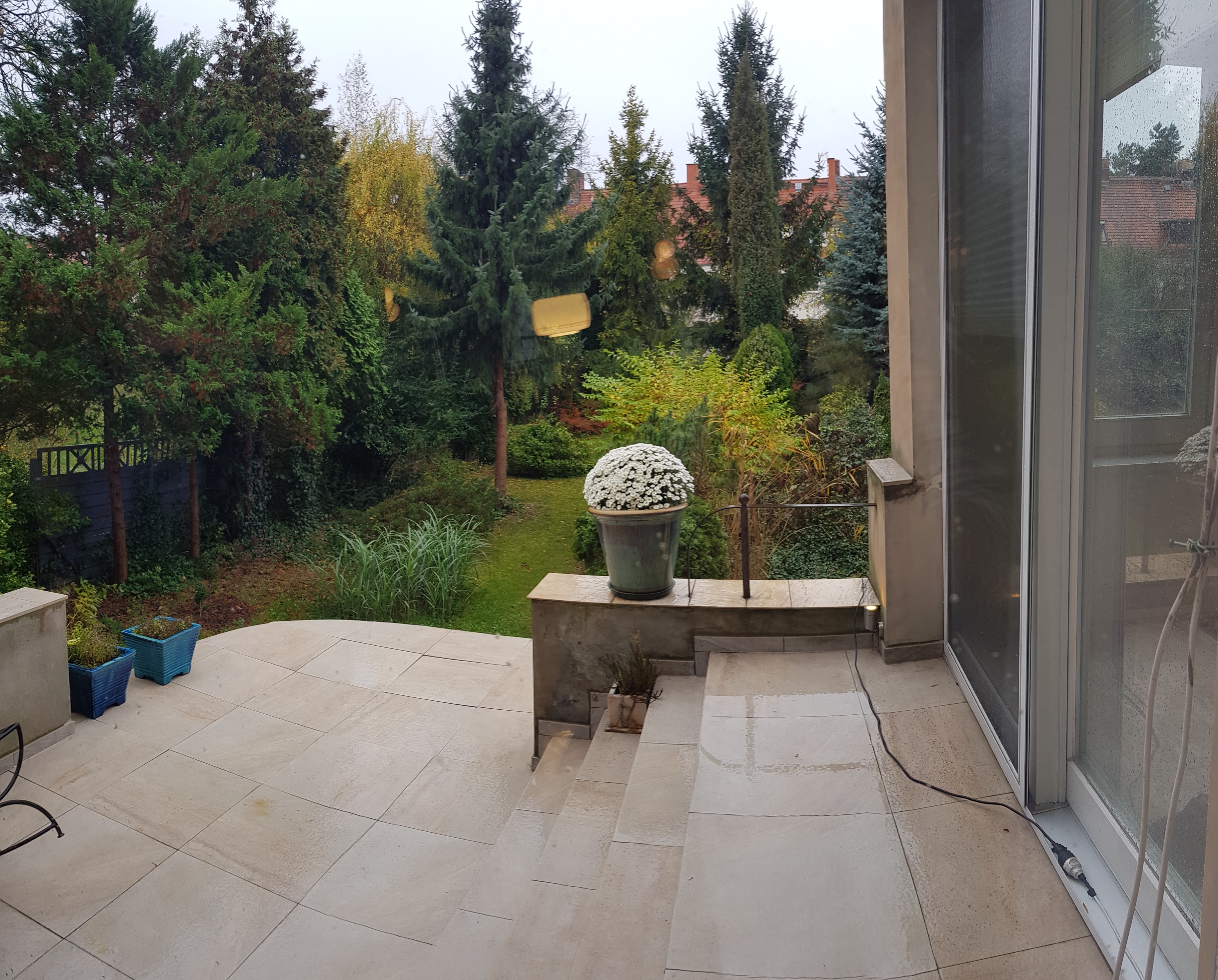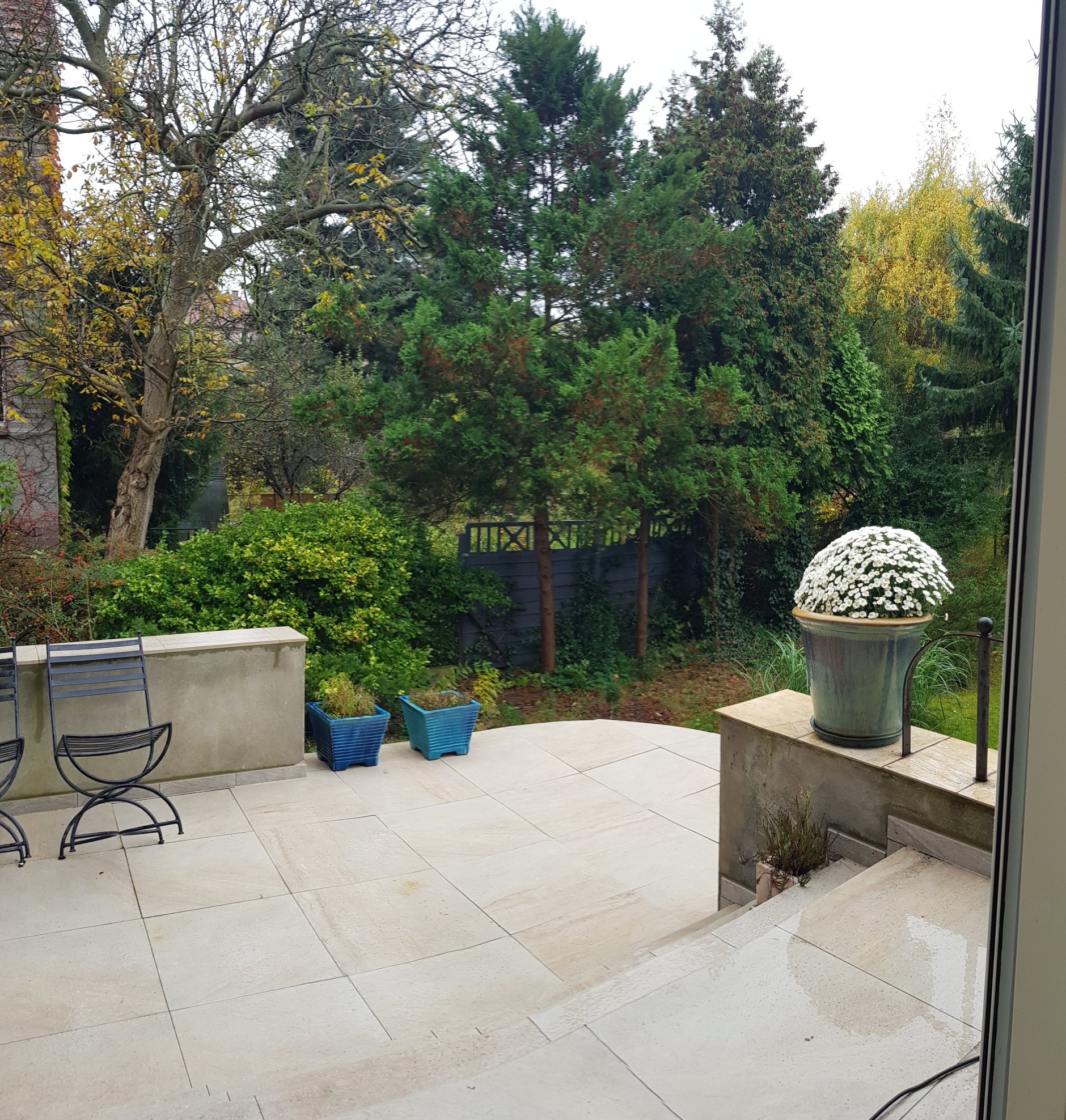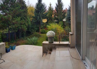 -taras ,na który wychodzi się z jadalni/oranżerii wprost do pełnego zieleni ogrodu.