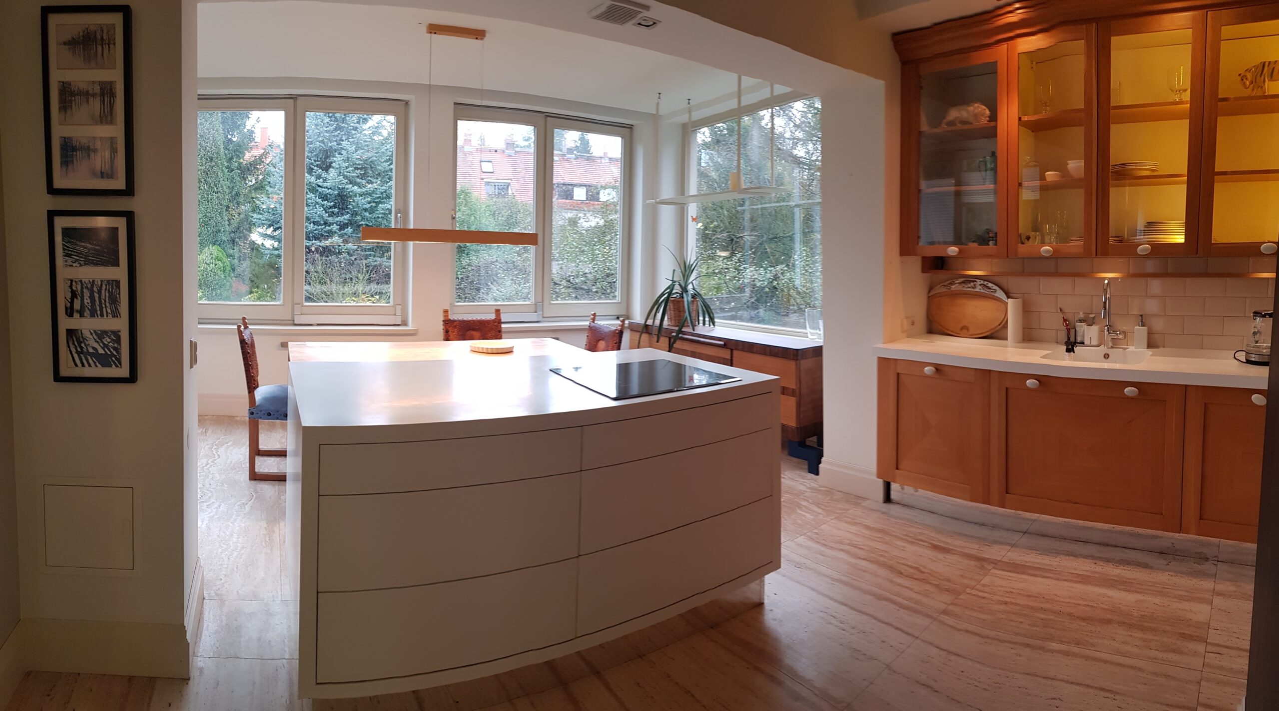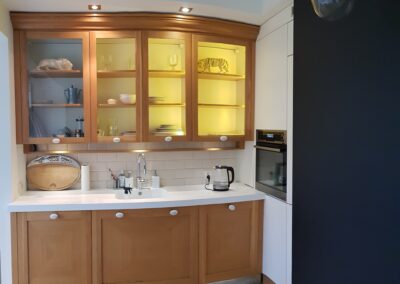 -meble w kuchni drewniane,sprzęt AGD-płyta indukcyjna Elektrolux,piekarnik parowy Elektrolux,duża lodówka,zmywarka 60.