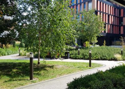 W okolicy park oraz wspaniałe tereny zielone wzdłuż rzeki Ślęzy ,małe pole golfowe,kameralna szkoła podstawowa nr 82 z boiskiem sportowym,przedszkole, szkoła Atut angielskojęzyczna,wszystko w odległości 5-10 min.Do szkoły 82 dzieci dojdą bezpiecznie jednym chodnikiem.